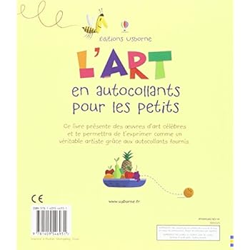 Les formes, les animaux, les couleurs, les visages, entre autres - onze thèmes en tout, illustrés par quelques oeuvres d'artistes peintres célèbres. Sur chaque double page, deux ou trois oeuvres sont reproduites, accompagnées de quelques faits très simples les concernant. L'enfant peut ensuite créer ses propres images grâce aux autocollants fournis, et il y en a aussi un à placer sur chaque oeuvre. Une fabuleuse initiation à l'art pour les jeunes enfants, interactive et ludique.