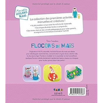 La collection des premières activités manuelles et créatives !- 16 jolis modèles conçus pour les enfants de maternelle- Des étapes illustrées faciles à comprendre- Des textes clairs et des conseils pédagogiques pour aider parents, enseignants et animateurs à encadrer l’activitéOriginale et 100 % naturelle, l’activité flocons de maïs est idéale pour développer motricité fine, concentration et goût de la création dès le plus jeune âge ! Faciles à modeler et à assembler en les humidifiant, quelques flocons colorés deviennent rapidement lapins, oiseaux ou masques pour le plus grand plaisir des petits !