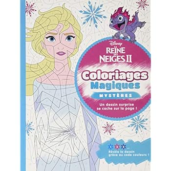 Un cahier de coloriages magiques dans lesquels un dessin surprise se cache sur chaque page ! – 31 grands coloriages mystères dans lesquels Elsa, Anna et leurs amis peuvent se cacher !– L’enfant découvre un coloriage dissimulé sous une grille. Mais en coloriant la scène selon le code couleurs, une scène apparaîtra !Dès 7 ans.